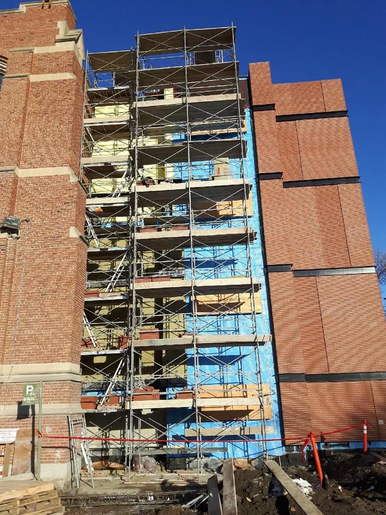 Although we take tremendous pride in our ability to restore a century old building to the highest of quality standards, the additions to the College Avenue Campus took no less dedication, attention to detail, and precise execution to complete. With over 23,000 square feet of brick veneer, including air/vapour barrier and insulation, and over a 1300 lineal feet of sill, base, and coping granite stone, this was no small feat. The architectural design has been referred to as “Modern Gothic”. A reflection of the past entrenched in a contemporary look and feel. Brxton was proud to have been a part of the transformation that will stand for centuries to come.
