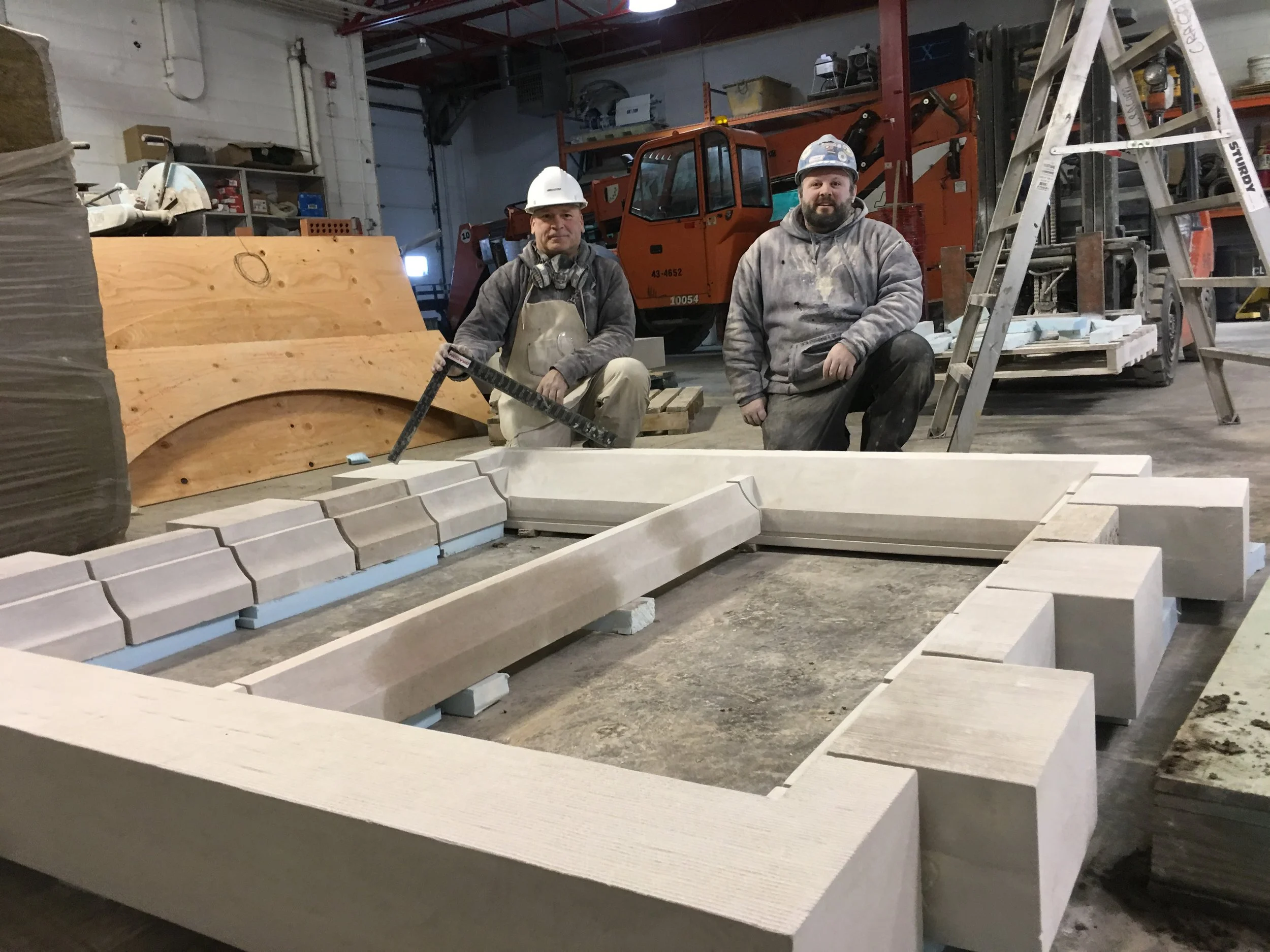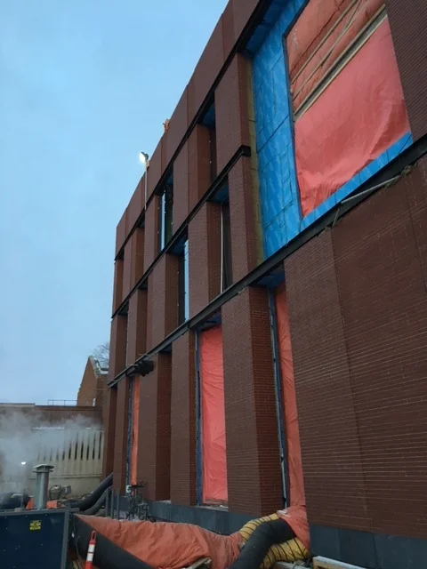 We started by carefully removing existing brick and Limestone from the existing campus building. Through the demolition process and the design, there was a need for new Indiana Limestone to be hand craved to match the profiles at the window jambs and doors of the new Conservatory west entrance. Our team began dimensioning and profiling the existing material and carving the new stone in house. The next step was to clean and restore the original materials to a healthy finish. We then put it all together to create something new, brick by brick, stone by stone.